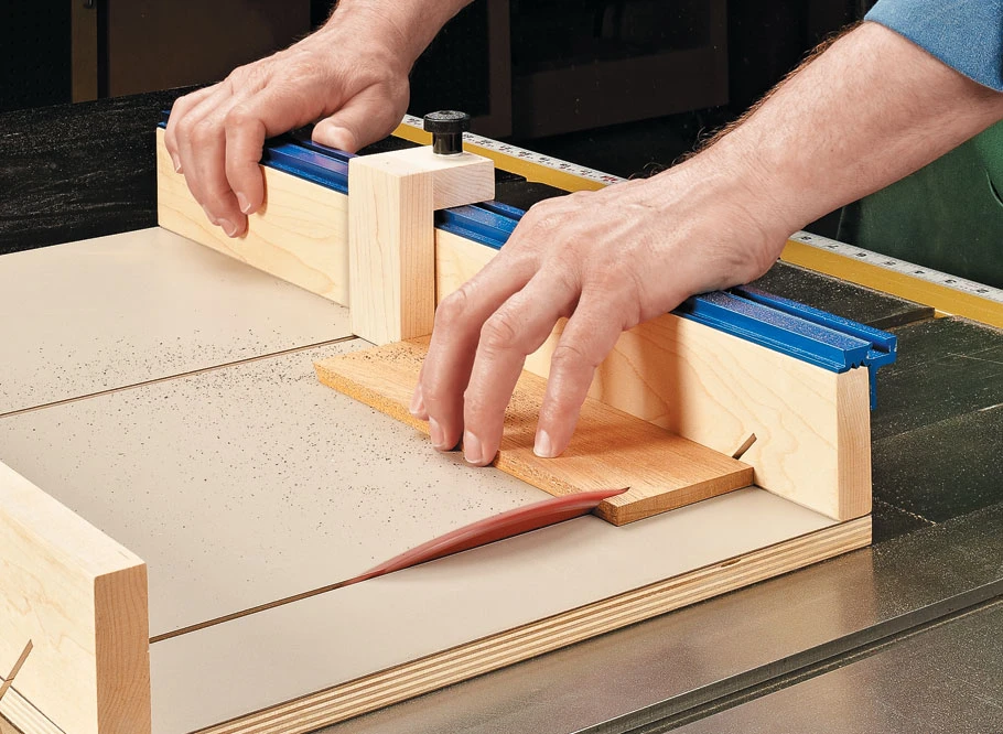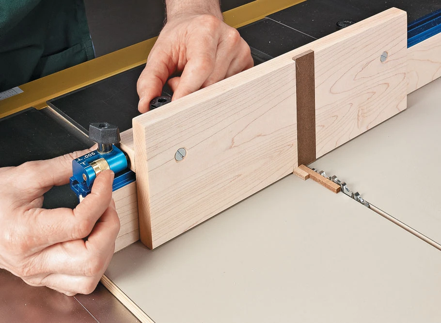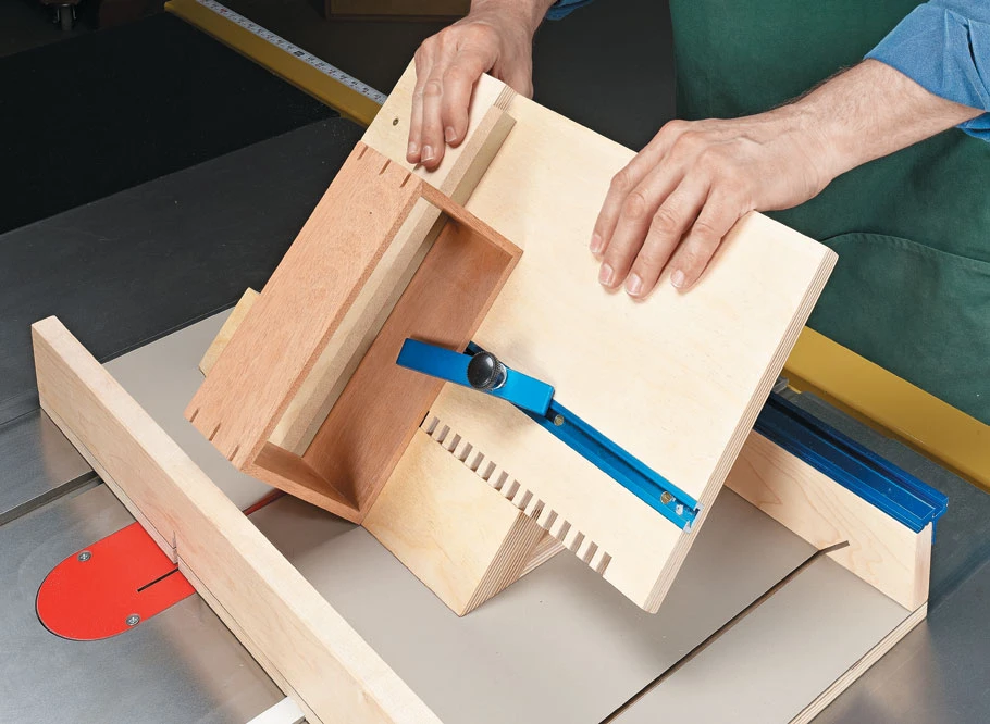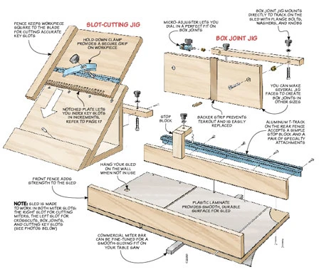Since box parts are often small, jigs and sleds can safely and accurately perform a variety of tasks from crosscutting and mitering to cutting box joints and slots for decorative keys. This sled takes that concept one step further by combining the functions of four jigs into one design. The key is a simple sled that performs a few basic chores. From there, you attach a couple of handy add-ons to tackle joinery.