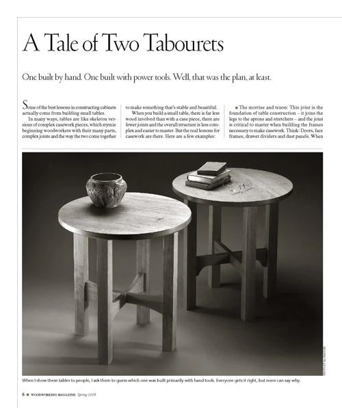 The theory behind this story was to build one table entirely by hand, and the other using only power tools. But sometimes, theories change in the actual doing.