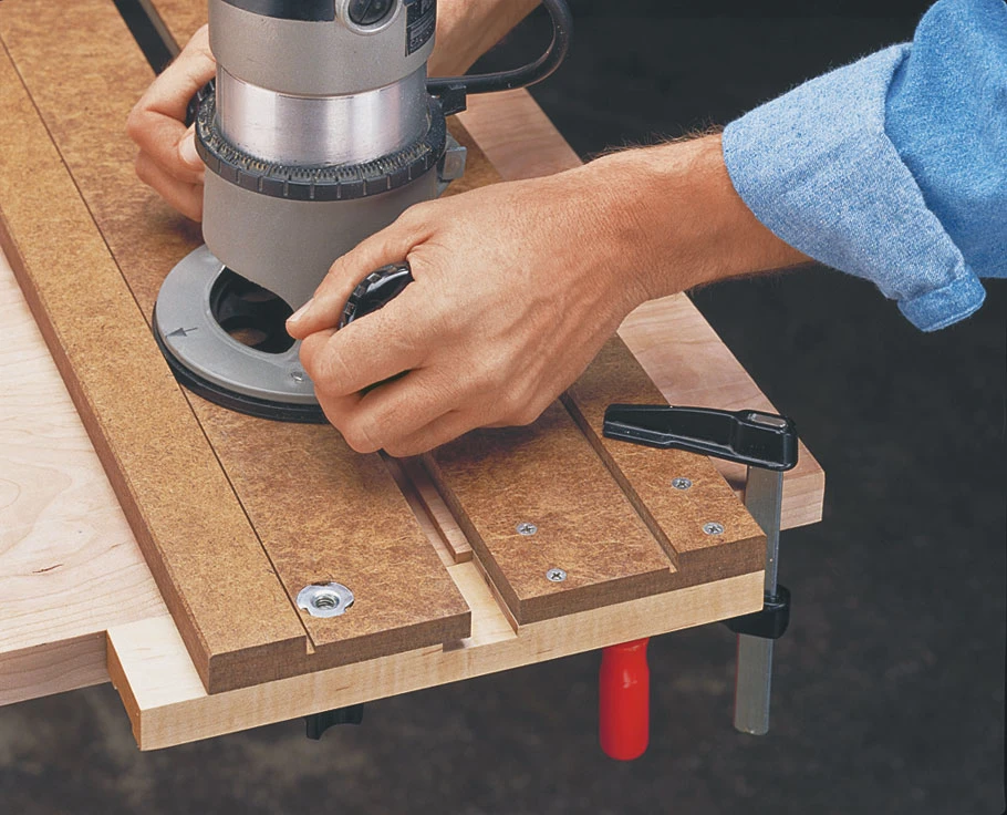 This adjustable dado jig allows you to rout perfect dadoes with pinpoint accuracy, and it’s incredibly quick and easy to set up. No more fiddling with a straightedge to get it positioned just right so the bit cuts exactly where you want. Just insert the piece that fits in the dado, and the jig adjusts to form an opening that’s an exact template of the width of the dado.