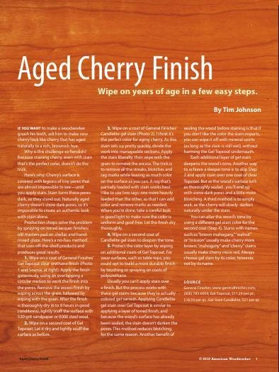 If you want to make a woodworker gnash his teeth, ask him to make new cherry look like cherry that has aged naturally to a rich, brownish hue. Here’s a no-fuss methodthat uses off-the-shelf products and produces great results.