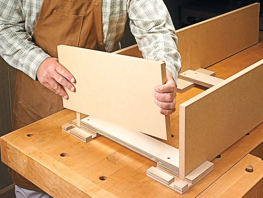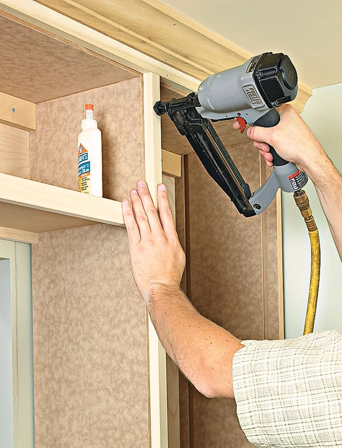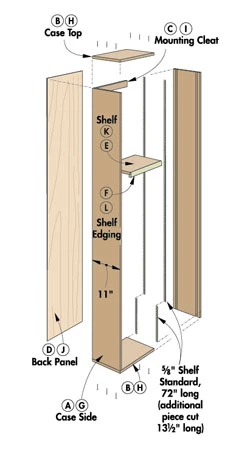 Most bookcases and display shelves are placed in a room wherever they fit. In this project, however, the bookcase is the room — or at least one wall of it. The nice thing about a project like this is that it takes advantage of an enormous amount of wall space that typically goes unused. A less obvious advantage of this bookcase is how incredibly simple it is to build and install. All of the casework is built using butt joints and screws. The shelves, all of which are adjustable, rest on shelf pins that snap into metal standards. To keep the size of the project manageable, the bookcase is built in sections that are tied together as they’re installed. The finishing touches are equally simple. A bit of crown molding, a touch of trim, and a coat of paint complete the picture.