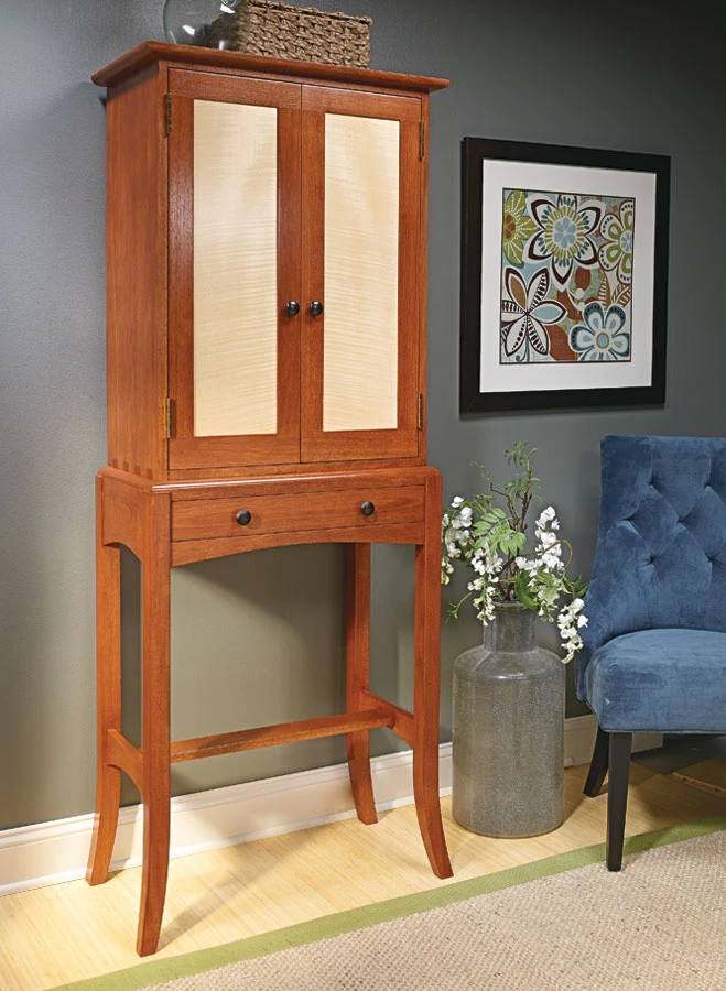 At its essence, a cabinet is a functional piece of furniture. Obviously, you want it to look good, but its primary purpose is to hold a whole lot of stuff. Every once in awhile, though, it’s nice to build a cabinet where the project — not what goes inside it — is the focal point. And that was the basic idea behind this heirloom cabinet on stand.