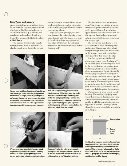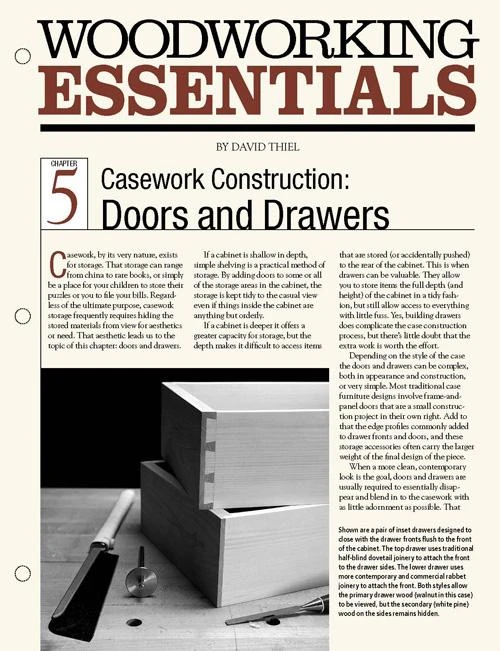 This article will help you decide on the best style of door or drawer for your project. David Thiel will show you when to use slab, raised panel or glass panel doors. You’ll look at different joinery for making doors, like dovetails, mortise-and-tenon joints, bridle joints, half laps and dowels. You’ll also get tips for cutting dovetail drawers by hand and look at rabbeted drawers.
