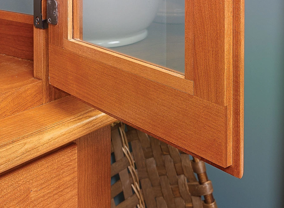 A dining room hutch serves as both a storage cabinet for a variety of dinnerware, as well as a display area for your fine china and other dishes. At over four feet wide and nearly seven feet tall, this hutch serves that role quite nicely. And the cherry construction, paired with the glass panels on the doors and ends of the upper cabinet, means that it looks great doing it. The hutch incorporates a wide range of woodworking techniques. You’ll be able to knock out some of the elements, such as the cabinets and face frames, with pocket hole joinery. Doors and the back panels make use of a cope and stick joint that’s easy to create at your router table. The drawers are built using half-blind dovetails. All in all, the result is a cabinet that not only looks nice, but also serves as a worthy complement to the other plans in this set: the dining room table, chairs and buffet.
