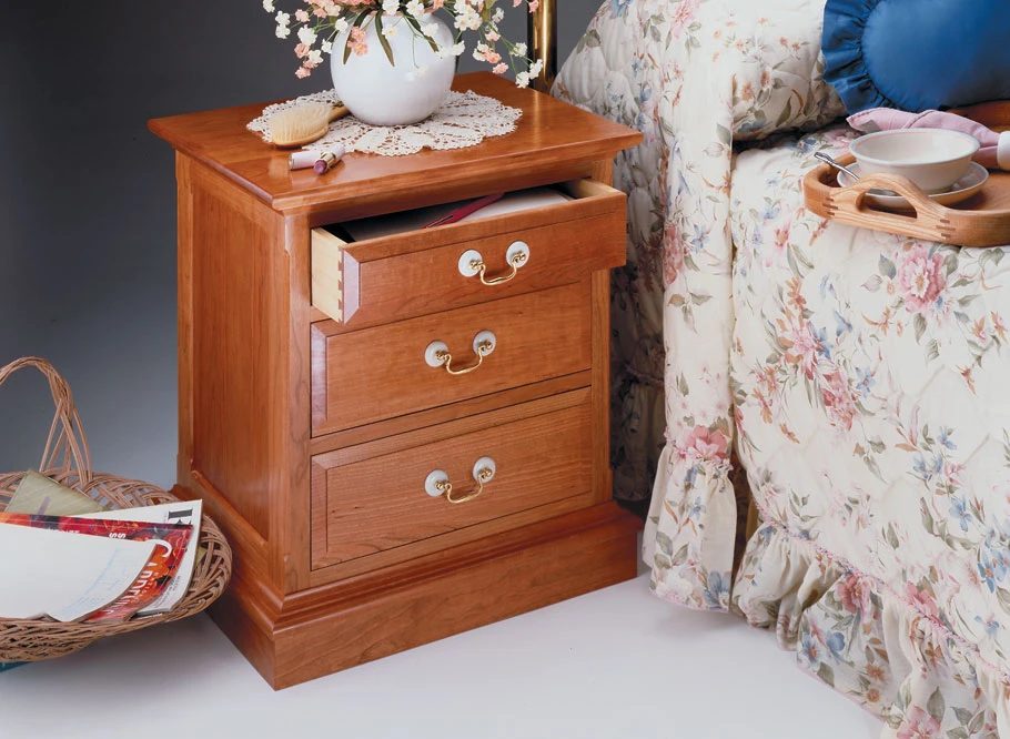 When you set out to build a classically styled cabinet, it seems only natural to use classic joinery… dovetailed drawers, frame and panel sides, and raised panel fronts. Plus, the smaller size of this night stand means you can test your skills, without using a lot lumber. Once you master the techniques used to build this piece, you can expand your set of furniture with other larger, matching pieces.
