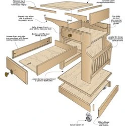 There’s not much to this hall tree: posts, hooks, feet and cross pieces. But as simple as it is, working out the final design took quite a few revisions. For one thing, a hall tree requires a center post. A solid post would have been hard to find — and pretty heavy. Plus, it would’ve had a tendency to warp. We considered laminating the post from two or three pieces of stock. But then there would have been visible joint lines running the length of the post. So instead of a single, solid post, we decided on four narrower posts (each 1″ thick) that are connected by the hooks, feet, and some special cross braces. This “Lincoln Log” approach lightened the weight of the tree and also made it quite a bit more interesting to look at (and build). With the post designed, next we worked on the hooks and feet. Of course, these pieces have to look right. But changing their size (and shape) also affected the stability and utility of the tree. So we played with the shape of the pieces and their lengths, trying to get a balanced look that worked well when you added coats, hats, and umbrellas. This required building several prototypes. But that wasn’t a big deal; you don’t have to cut any tenons on the inside edges. Instead the pieces are simply sandwiched between the posts.