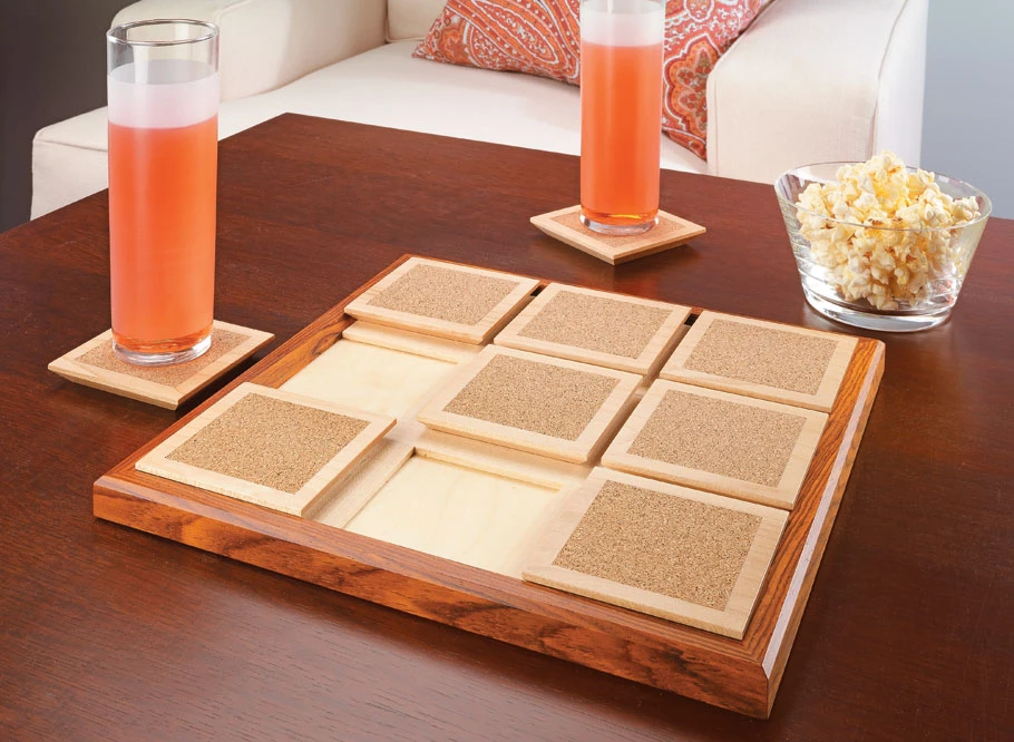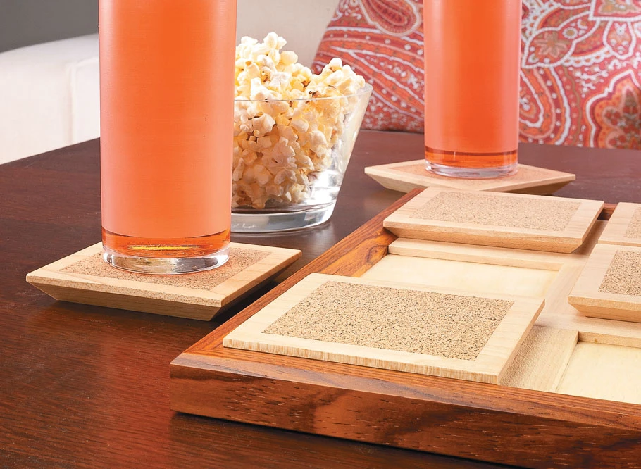 Any coaster will provide a place to set a glass. But finding an eye-catching design that you’re proud to leave sitting out on display is a different matter. This set of nine coasters fits neatly in a divided tray. With all the coasters in place, you can use the centerpiece as a stand for a bowl or vase or as a trivet for a hot dish. When you need to use an individual coaster, all you have to do is press down on one edge and it pops up from the tray so you can easily grab and remove it.