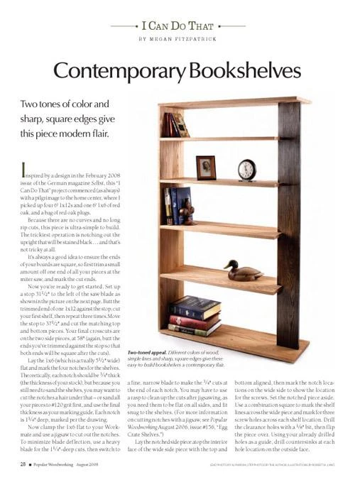 This elegant set of bookshelves can be made from “off the shelf” home center material, using simple joinery and a few basic tools.