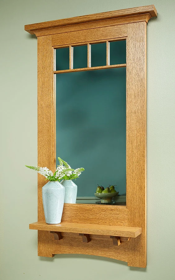A wall mirror is a welcome addition to just about any room. The design for this mirror makes it not only attractive, but easy to build as well. The basic mirror frame is pretty straightforward. But the details make the mirror a lot more interesting. A narrow shelf supported by corbels offers a place to display small items. And the decorative cove moldings between the corbels and on the top really give the mirror a more refined look.