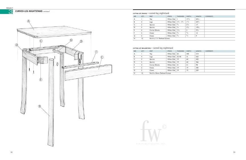 We made ours from white oak and think it’s just perfect sitting next to the sofa. Plan includes exploded view of the nightstand, cutting and material list, step-by-step instructions, and full-color photographs. From The Biscuit Joiner Project Book by Jim Stack.