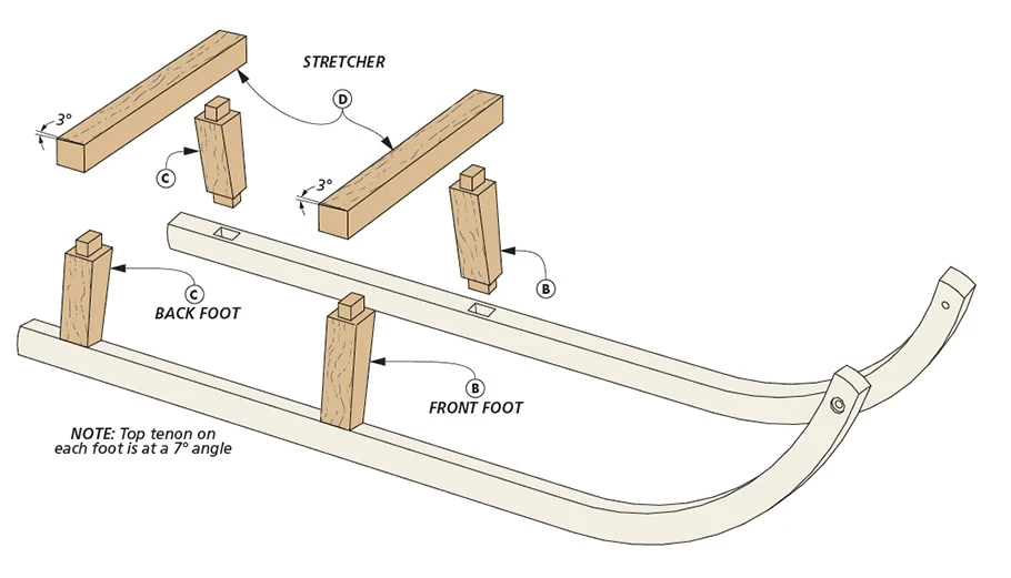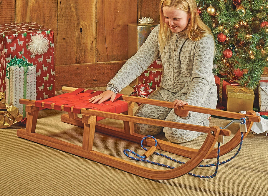 This sled, sometimes referred to as a “sledge” (a stouter sled for moving heavy loads) is based on a vintage snow sled design originating in Davos, Switzerland. Traditionally made from ash, these sleds have been used for hundreds of years to carry cargo and elicit smiles. The most daunting task of any sled is creating the runners. But these runners are simple to build utilizing a bent lamination technique.