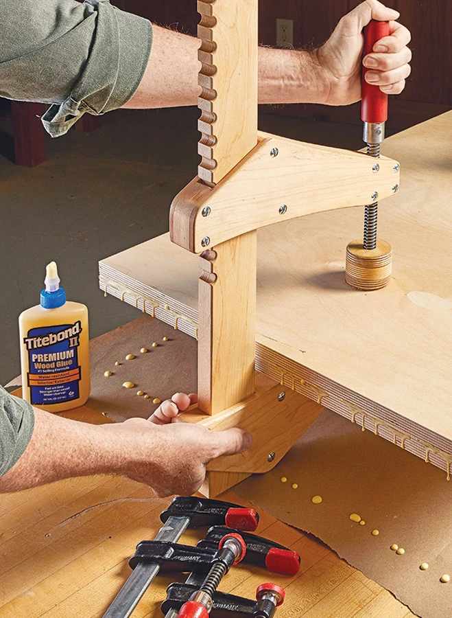 Big clamps aren’t often needed, but when they’re called for, there’s really no substitute. And buying a pair of the same size F-style clamps you see here will set you back on the money you’re saving for that new power tool. This low-cost alternative is a win-win in my book. It’s always fun to do a project that integrates hardware that’s out of the norm (barrel screws and a big ol’ Acme threaded rod). Plus, you can overcome some of the weak-points of store-bought clamp designs.
