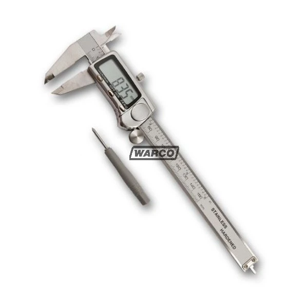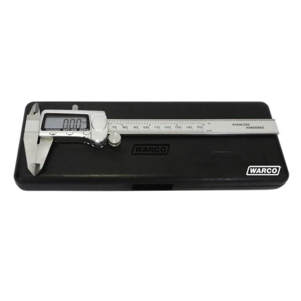 Quality metal cased digital vernier caliper with thumb wheel.