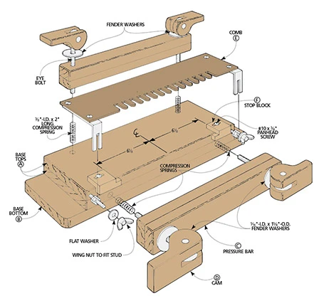 When I first started to build this dovetail jig, I thought the advantage would be the low cost. All you need is some standard, off-the-shelf hardware, 5 board feet of hardwood , and a piece of hardboard to make your own “comb” template. However, as I got into the project further I found some improvements I could make over manufactured dovetail jigs along the way.