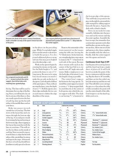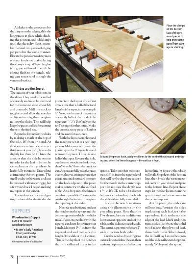 Clever concealed leaves give instant access to more surface area, without disturbing anything on the table top. Includes plans and instructions for this unique table.