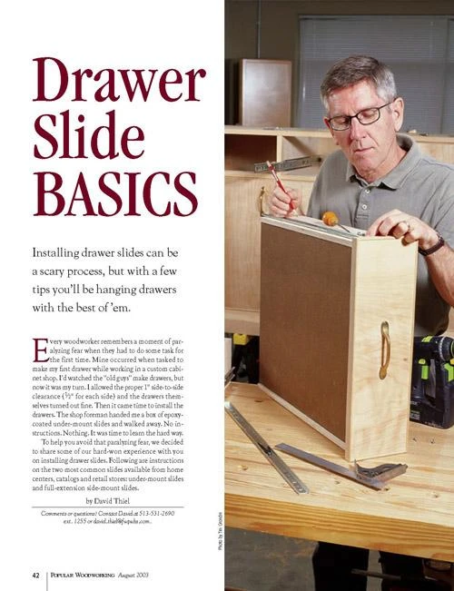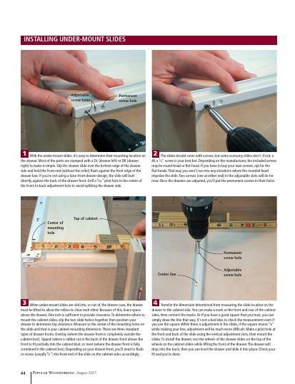 Commercial metal drawer slides can help your next project have perfectly fitted drawers that glide like they’re on air. Here are the tricks you need to know to install two common styles of slides. Includes photos, and step photos.
