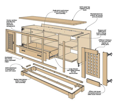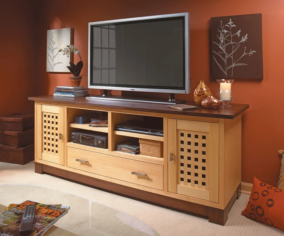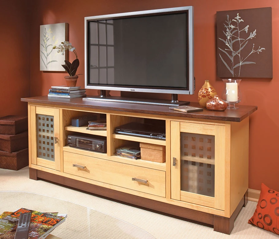 At over six feet, this stylish cabinet is wide enough to handle a big TV, either sitting on top or mounted on the wall. Down below there’s plenty of space for your electronic equipment, a media collection, or extra cables. What you’ll really appreciate is how easy it is to build. It’s a simple plywood case trimmed with a solid-wood top, face frame, and base. For a different look, the plan also includes instructions for building optional frosted-glass panels for the doors.