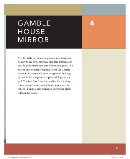 This vertical Arts & Crafts mirror is similar to a design found in the historic Gamble House in Pasadena, Califronia. Assembly requires simple tools and materials making it a fast project for your home or as a gift.