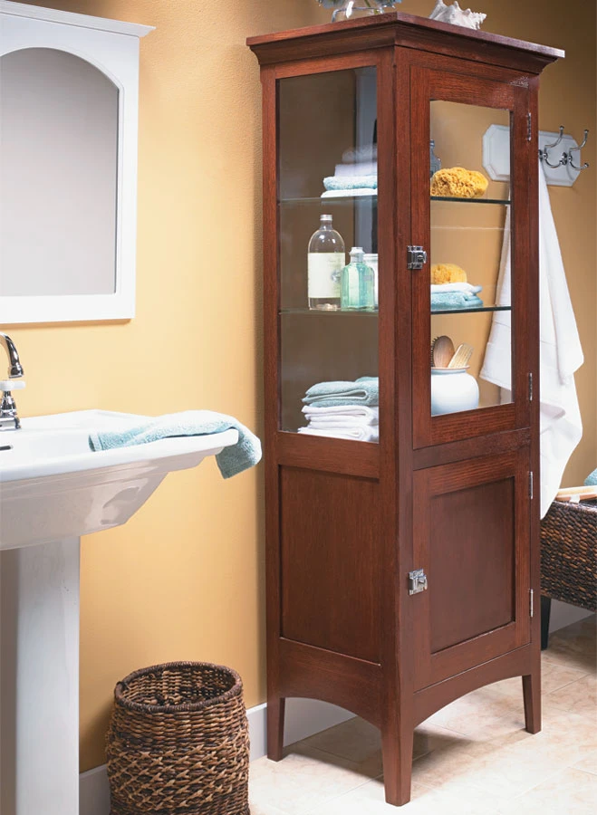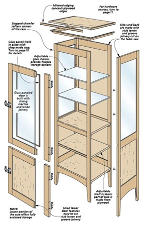 Showing off is what this cabinet is all about. And there are enough interesting details that made it jump to the top of the list of projects that you may want to build. Now most people will admire the objects displayed in the “glassed-in” upper section. Or how the cabinet offers both “hidden” and open storage. And the fact that it has a small footprint means you can tuck it in just about anywhere, giving it a lot of versatility. But woodworkers will take notice of the details and straightforward construction that makes this cabinet a stand-out.