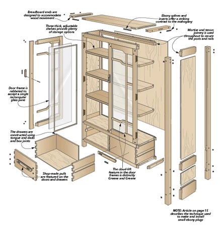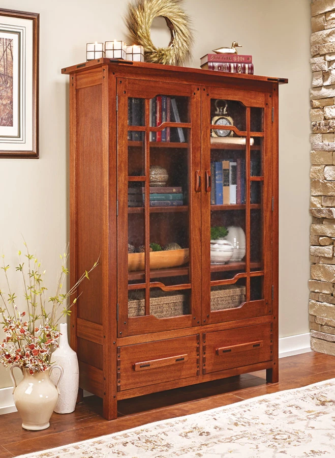 Building a piece of Greene and Greene-inspired furniture ranks pretty high on many woodworker’s bucket list. The distinctive styling details and traditional joinery provides plenty of challenges along the way, but not to worry. We’ll guide you each step of the way. Nothing is more striking with Greene and Greene designs than the use of offset surfaces, subtle curves, and contrasting accents. We’ve provided a heaping helping of all those aspects in this bookcase. The bold styling of the signature “cloud-lift” details in the door frames, along with the ebony accents used throughout, lend a feel of authenticity to this project that will look great anywhere in the house.