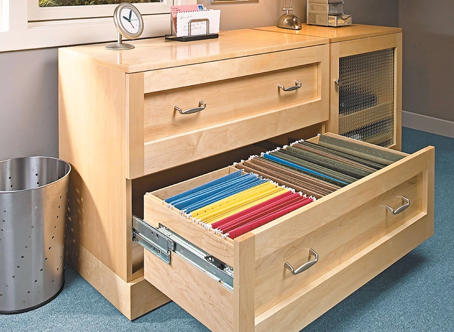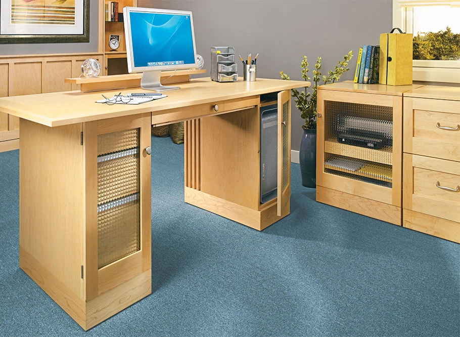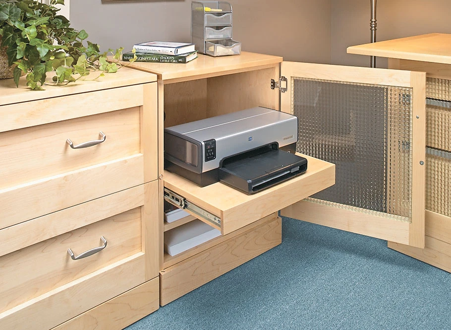 The heart of any home office is the computer desk, but what sets this desk apart from all others is that it’s designed to look great anywhere in the room — whether up against the wall or out in the middle of the floor. That’s the product of a unique wire management system built into the desk. A well-equipped home office also includes a variety of components and supplies — not all of which need to be on constant display, so the plans also include a lateral file and printer cabinet. These must-have office accessories offer storage and convenient access to everything you need to have close-at-hand, but also stored neatly and out of the way.