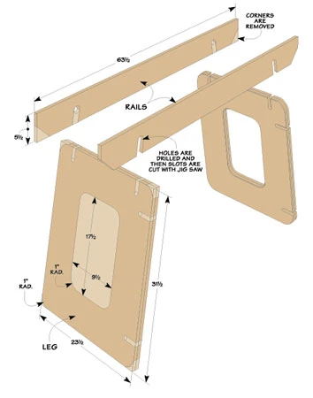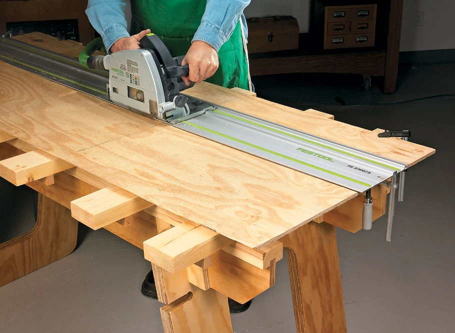 This knock-down workstation can be made in a few hours. It’s simple, yet the strong design makes it useful around the shop, house, or outdoors. You can set up a workstation in almost no time at all. And it can be assembled at two different heights. Use it in the low position as an assembly table or finishing table. Or for cutting sheets of plywood down to size with your circular saw. At the high position, you’ll have another workbench or miter saw station.