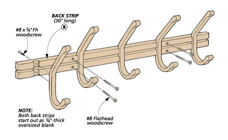 Hesitant about bending wood? Then this is the perfect project to start with. The form is easy to build; the hooks are small and quite manageable, and you don’t need a wall full of clamps — six is all it takes. Plus, there’s even a step-by-step article that will walk you through the bending process.