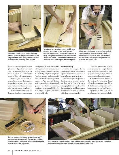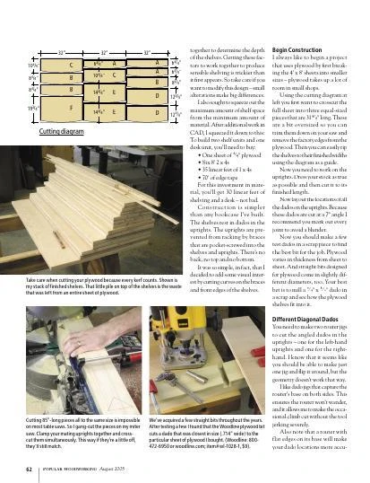 The unit shown was made with poplar uprights that were painted black, with clear finished plywood shelves. Make yours the same way or choose any wood species you like.