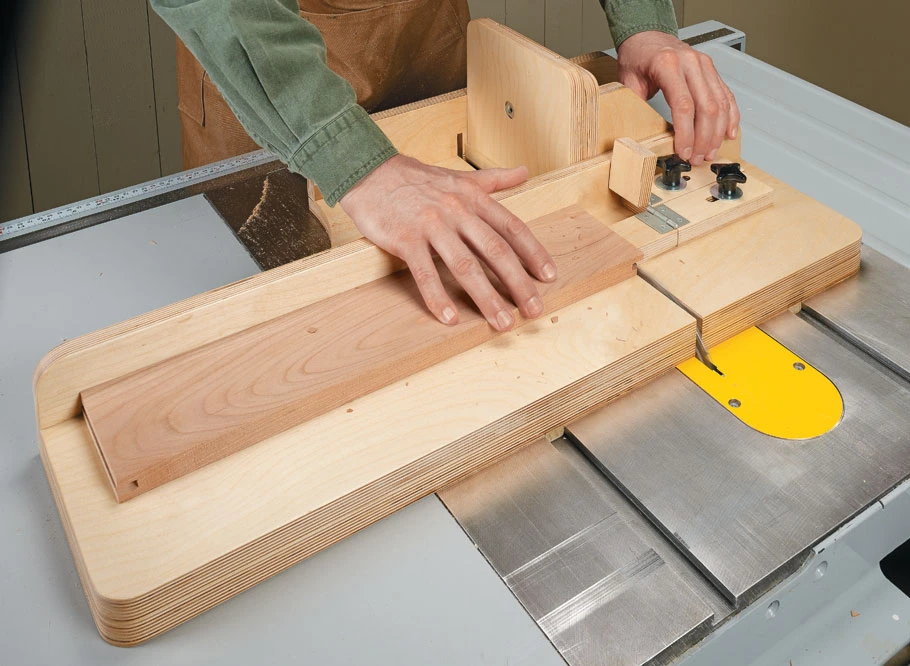 We use locking rabbet joints quite often when building drawers. But setting up to cut a tight-fitting joint can be a tedious, frustrating process. The location and size of the dadoes and tongues have to be perfect. This jig eliminates the guesswork and allows you to cut a snug joint in a snap. Using a pair of flip-up stops and a tall, adjustable fence, the jig lets you make all the cuts with one setup. A few test cuts are all you need before you’re ready to cut all the workpieces in “production mode.” Just a few easy steps and you’re done. We include specifics on using the jig to cut four variations of the joints.