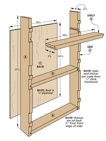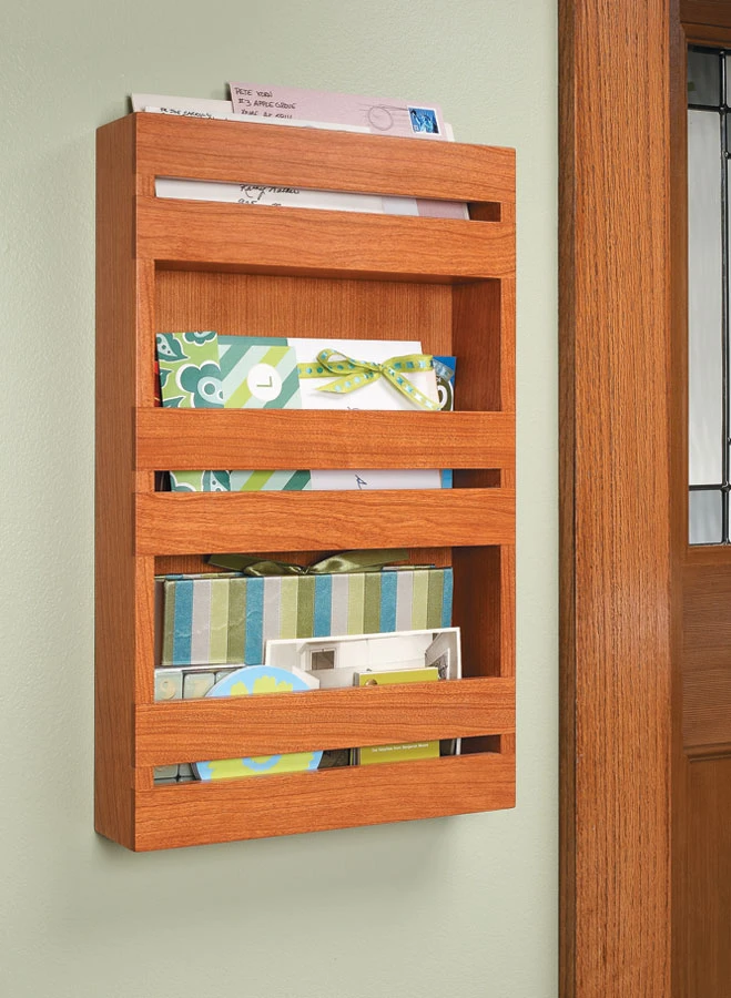 Keeping letters, bills, and papers sorted is always a challenge. This handy mail organizer hanging on an office wall can keep all that correspondence close at hand. From a woodworking perspective, it’s a quick and straightforward project to build. The tongue and dado construction makes the joinery a breeze while also providing plenty of strength. Most of the joinery work is done on the sides. Then it’s just a matter of cutting rabbets on the ends of the shelves, front rails, and the back rail. A plywood back keeps everything square.