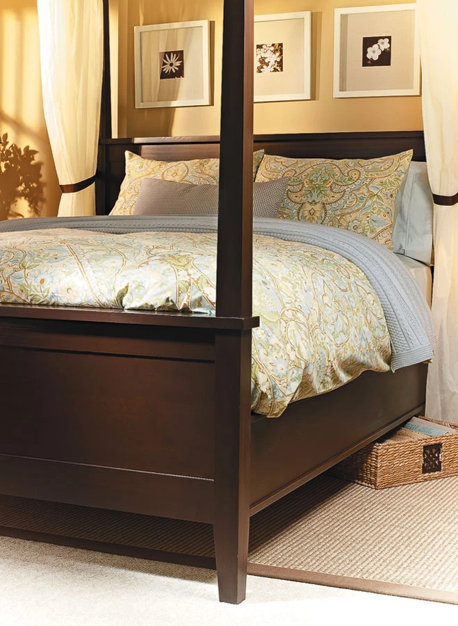 From the tall tapered posts to the frame-and-panel headboard and footboard, classic design elements make this bed a showpiece that’s at home in just about any bedroom decor. In addition to the style considerations, you’ll appreciate the ease of construction and attention to the overall structure. Since the bed will be moved at some point, you can’t use permanent joinery to attach the headboard and footboard to the rails. Fortunately, modern knockdown hardware makes it possible to accommodate almost any design. We’ve chosen some very common hardware and assembly ideas for this bed.