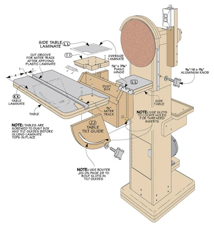 Getting smooth, even curves can be tough to do by hand or with portable sanders. But after building this disk sander, those hassles are a thing of the past. The top feature of the sander is the big, 12″ disk, of course. But that’s only the beginning. The drive shaft extends out the back to allow you to attach a buffing wheel, or flap sander. And for easy access, the head of the sander is designed to pivot. You’ll find building the sander is pretty straightforward, too. It’s made from inexpensive MDF using basic rabbet and dado joinery. An added benefit, MDF adds mass and reduces vibration.
