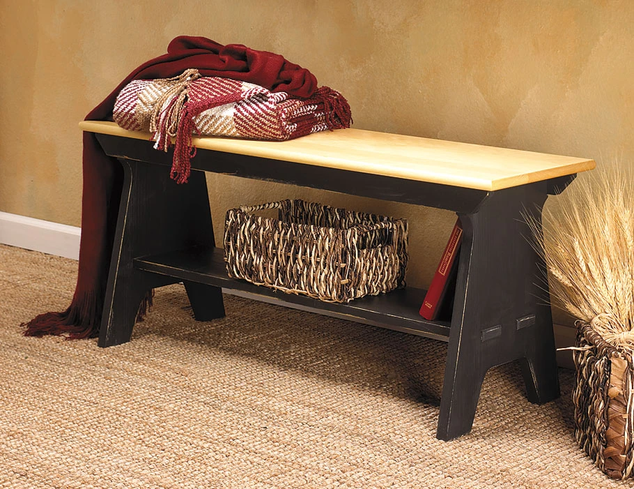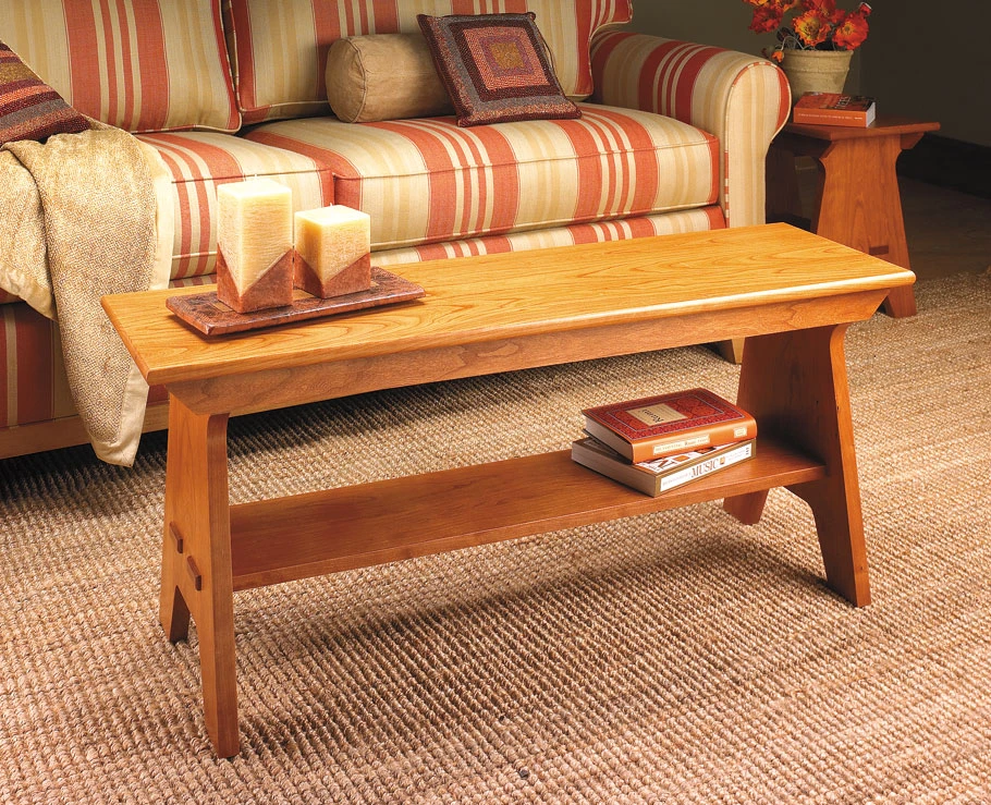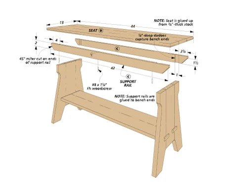 Two ends, a seat, and a few connecting pieces — that’s really about all there is to it. The “through-tenons” of the stretcher give the bench the look of a piece that took some extra time and experience to build. But, believe it or not, a simple technique uses the table saw to cut the mortises quickly.