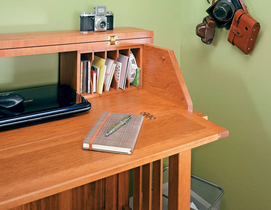 There’s a lot to be said for downsizing — minimizing the clutter while maintaining the essentials. One way to work toward this goal is to make the most efficient use of limited space. Building this compact, drop-front desk is guaranteed to put you on the right road.