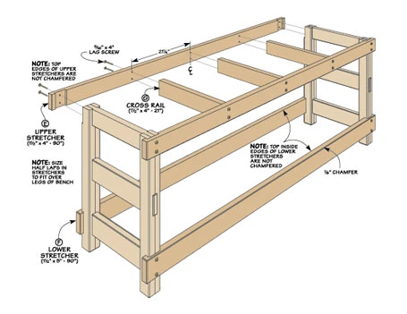 A workbench you can build in a weekend – That was our main goal when we designed this bench. But a bench that can be built in a weekend isn’t much use if it doesn’t hold up over the long haul. So we made it rugged enough to stand up to just about any punishment you can dish out. We used inexpensive, commonly available construction lumber for the entire bench, including the top. Then with the money we saved, we bought a nice machinist’s vise to install on the top.