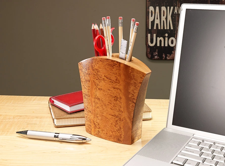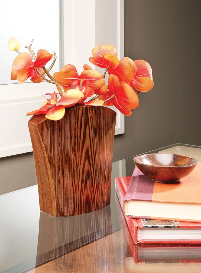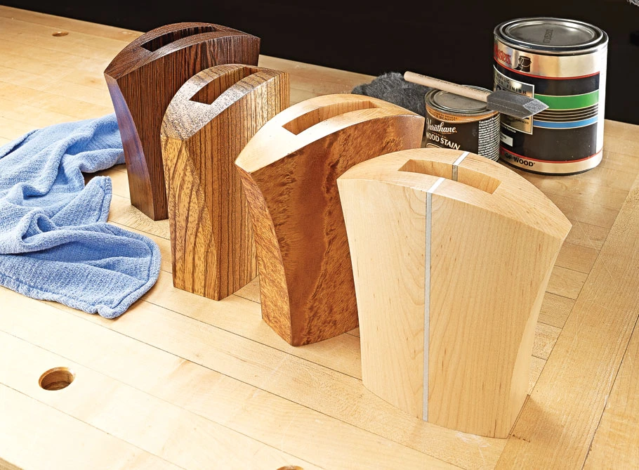 This vase design is a great way to use a few of those special pieces of wood you may have squirreled away over the years, waiting for the right project. This is woodworking at its essence – just a block of wood that’s shaped at the band saw to achieve its sculpted appearance.