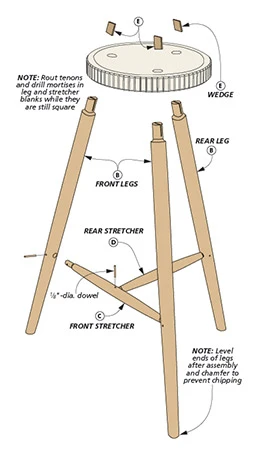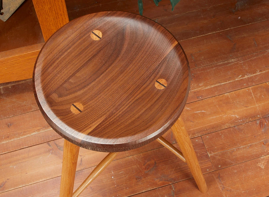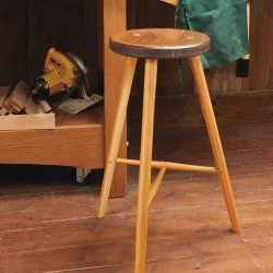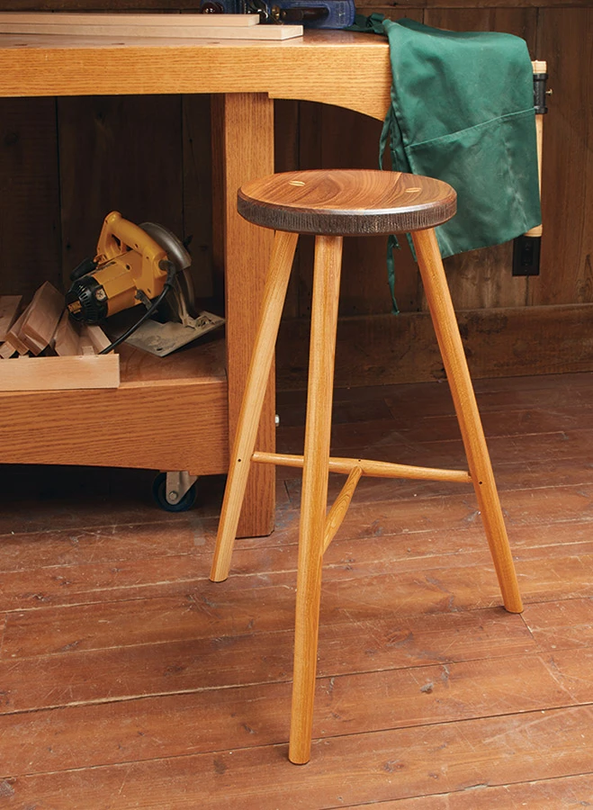 Working in a small shop, I used to view a shop stool as just one more thing to get in the way of getting a job done. But as I’ve aged, I’ve come to appreciate having a stool more and more. And not just for sit-down tasks. Having a place to take a load off your feet for a few minutes really does make spending long stretches of time in the shop more bearable, as well as enjoyable. This is not just a shop stool, however. The casual styling makes it suitable for a kitchen island or tall table, as well. Plus, you’ll have the satisfaction of making it yourself. Ours is crafted from walnut and hickory, but just about any hardwood will do.