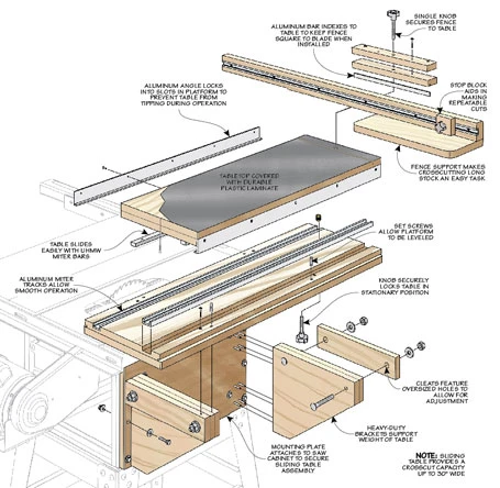 Sliding tables are usually found on large, industrial table saws used for panel-cutting. And there’s a good reason for that. A sliding table guarantees precision cuts, particularly on wide panels. With the sliding table shown here, you can upgrade your ordinary table saw to make square crosscuts every time. The table replaces a wing on your saw’s table. You may have to shorten or move the fence rails, but this modification is worth it. The sliding table has the capacity to crosscut a 30″-wide panel with ease. The fence automatically registers square to the blade when installed and can be easily removed. This fence also features a side support to help when crosscutting long stock. If you’ve been looking to improve the accuracy and capacity of your table saw, this sliding table is the perfect project.