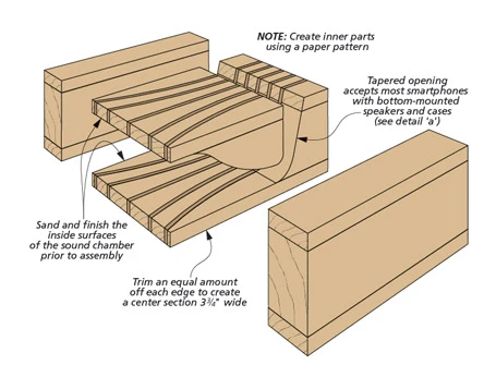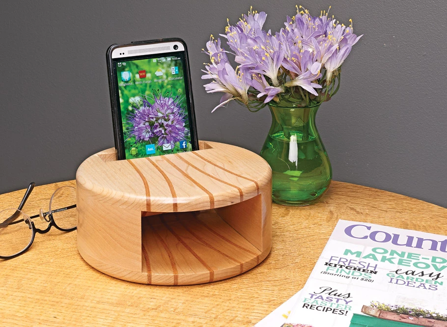 While the speakers on smartphones have improved over time, the sound coming from them doesn’t project very well. However, with a little shop time, you can create an amplifier like this one. The unique design dramatically increases the volume coming from the speaker located on the bottom of the phone. A tapered opening in the top accepts most phone models, even with a case. Of course, if you’re going to build a project, it’s nice to hone some woodworking skills along the way. For this project, you’ll spend some quality time working with your band saw.
