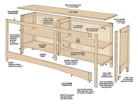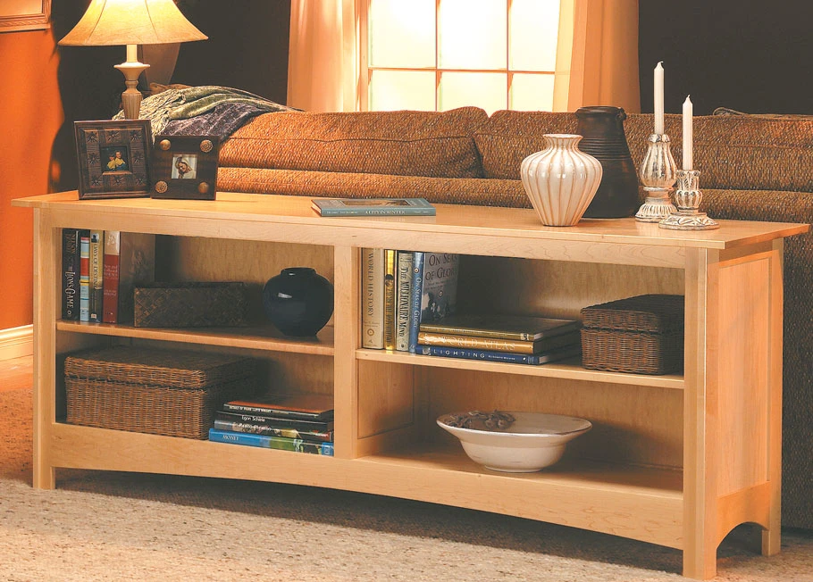 Many sofa tables are just that — tables. The space under the top is usually open and not used in any way. So instead of a table, this is a sofa table bookcase. It’s designed to make full use of the space under the top. Of course, there’s no reason this bookcase has to sit behind a sofa. It’ll look great in a variety of settings. The plans include design options for adding solid wood or glass doors.