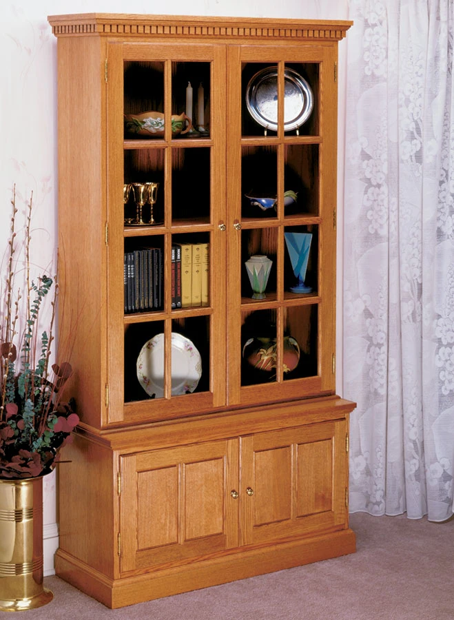 The first think you’ll notice about this cabinet is the glass doors. They’re each divided into eight segments and surrounded by a molded edge. But, that’s not the most interesting part. The most interesting part is how they’re made. And the plans will show you how. The remainder of the project is pure woodworking. Inside the plans, you’ll find traditional techniques that will make you a better woodworker.