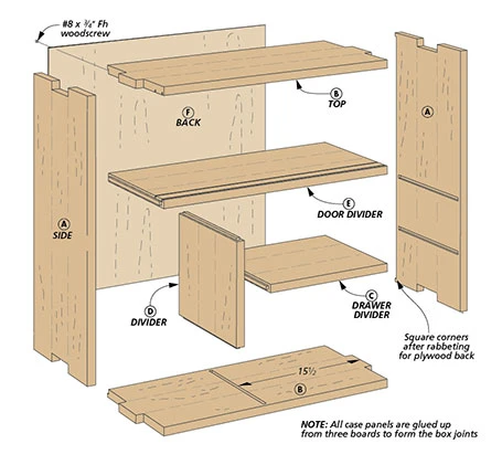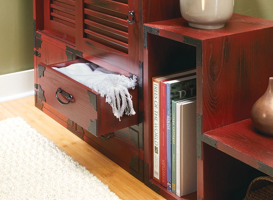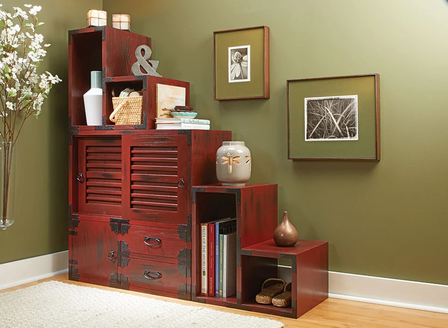 This scaled-down version of a traditional Tansu cabinet offers a number of woodworking challenges, including oversized box joints, sliding doors, and an aged paint finish.