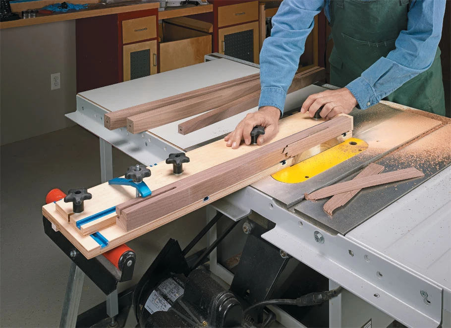 Cutting tapers at the table saw usually involves making a quick, one-use jig. This jig offers a permanent and flexible solution. This jig can be adjusted to cut two and four-sided tapers in almost any size leg. A side benefit to the adjustable features of the jig is that it allows you to tackle other tough cuts, like safely ripping a straight edge on rough-edged lumber.