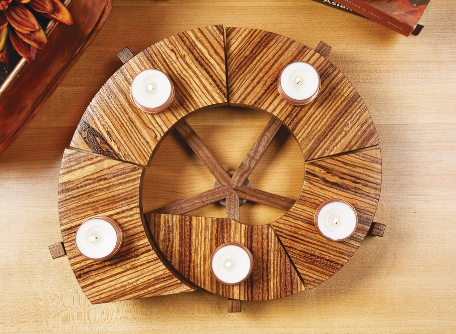 Woodworkers are typically a very giving group of people. Sharing handcrafted projects with others is the ideal way to show you care. So it’s no surprise that small projects, like this candle centerpiece, are so popular. It can be built in a short amount of time and makes the ideal gift for a friend or loved one. The beauty of small projects like this is that they give you a chance to use some special wood and materials, plus they go together quickly. But just because this is a small scale project, doesn’t mean you won’t learn a few things along the way.