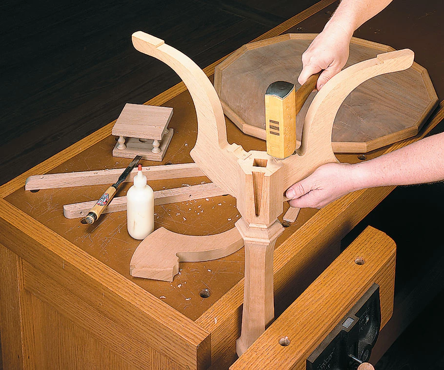 When you see this table for the first time, it’s hard to know where to focus your attention. Between the figured veneer of the top, the graceful curves of the legs, and the six-sided column, there are plenty of things to catch your eye. But the most interesting feature is one that you don’t notice right away. Under the top of the table, you’ll find a small, box-like assembly called a “birdcage”. And it’s this birdcage that makes the table really special — it allows the top of the table to both tip and turn.