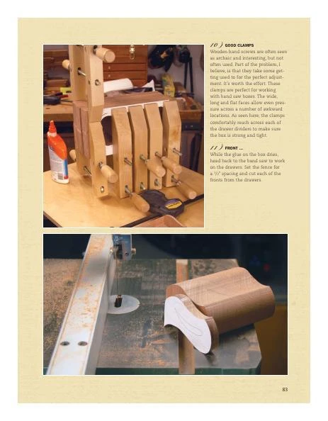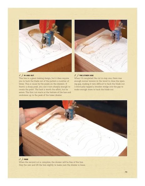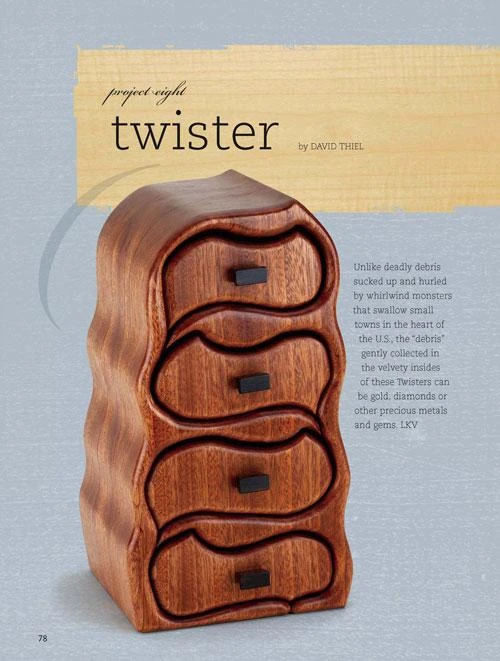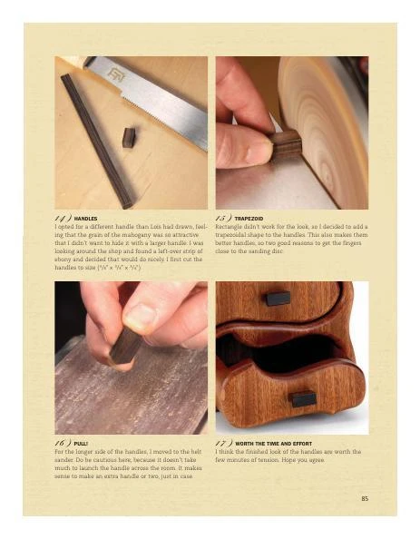 The inside surfaces of all the drawers are lined to keep your precious items safe, and you can make this box with the material of your choice. The box on the cover was made with mahogany, but it would look great in any hardwood.