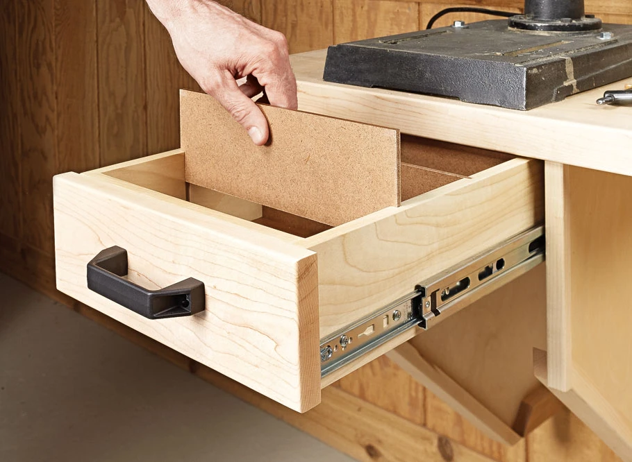 A benchtop drill press packs a lot of accuracy and versatility into a compact package. This workstation makes a couple of improvements any woodworker will appreciate. First, a stout shelf with a drawer creates a platform for the drill press and offers some valuable storage. Then an easy-to-build auxiliary table and fence system add support and accuracy.